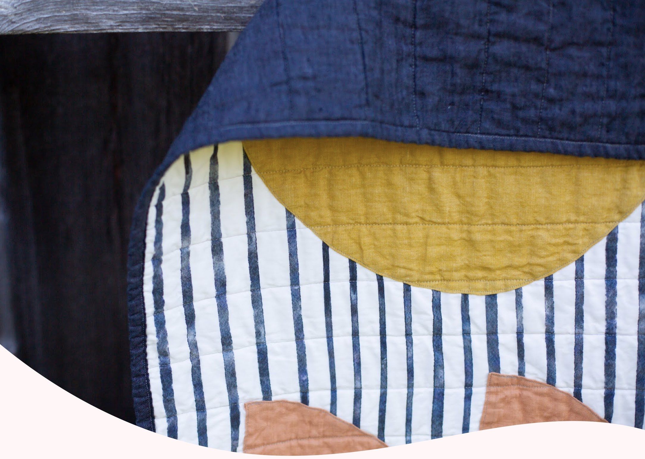 We use only 100% organic cotton fabrics, batting, and thread (many of which are GOTS Certified). Water-based pigment inks and low-impact dyes reduce exposure to harmful compounds.